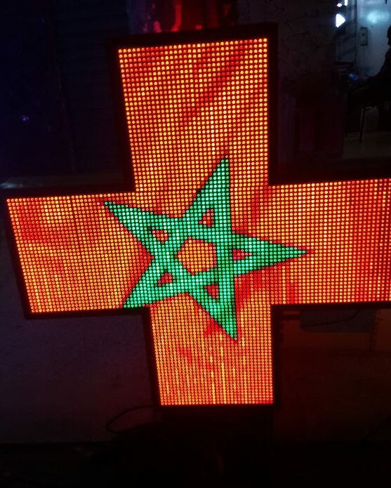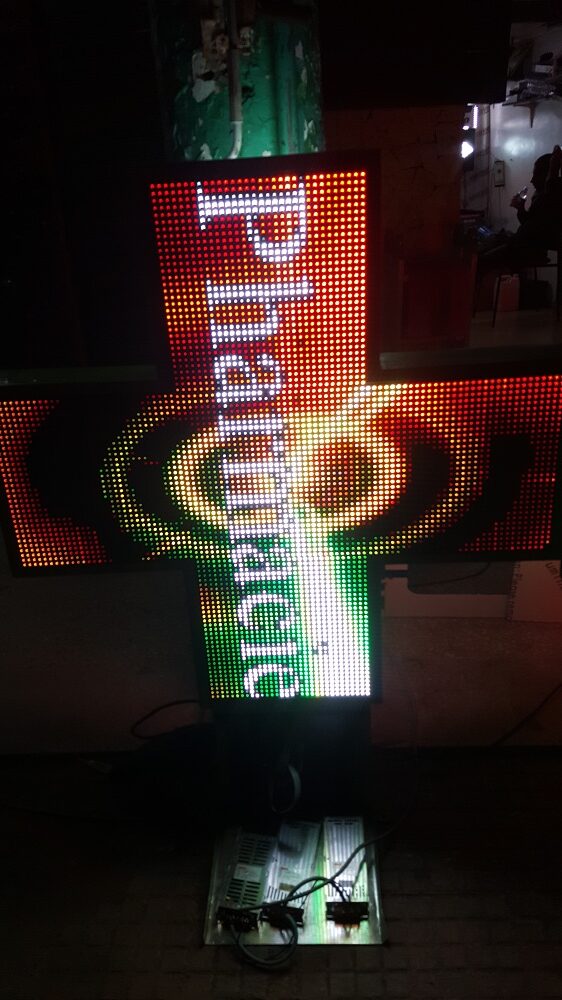 la communication avec les Croix de Pharmacie, Croissant de pharmacie se fait avec une communication RJ45. D’autres modes de communications sont possibles comme la communication WIFI:http://led.nejjaoui.online/2017/04/18/panneau-led-avec-communication-reseau-rj45-ou-wifi/